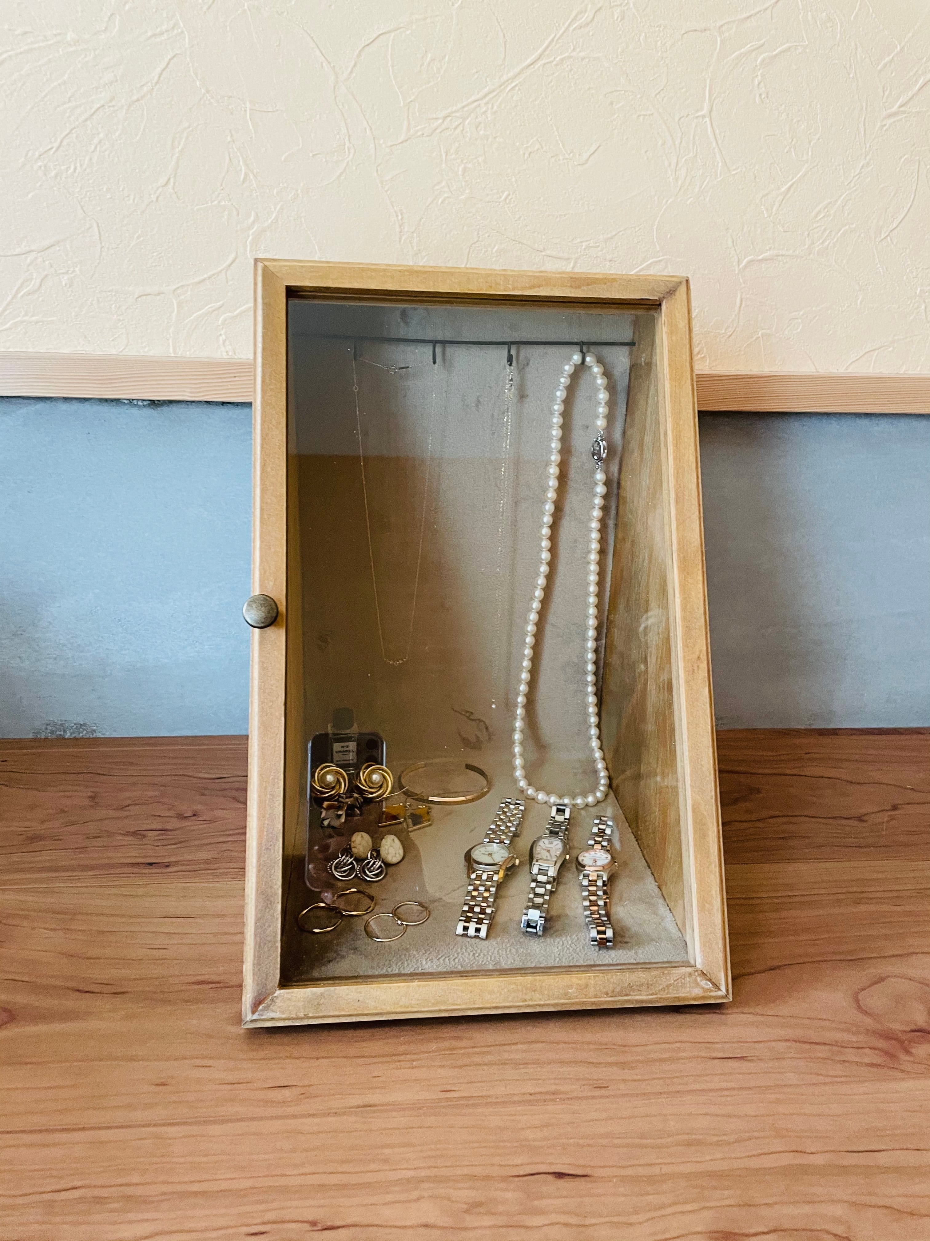 ★木の優しい雰囲気に仕上げたディスプレイケース。
